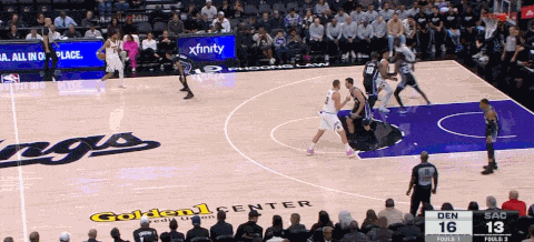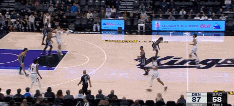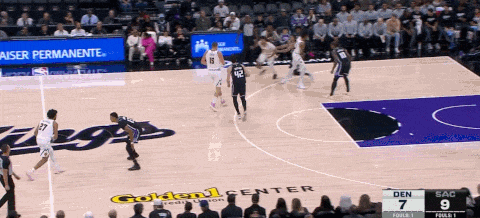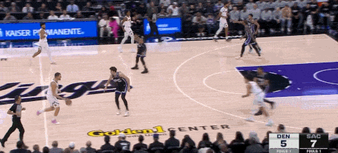 当国王队在身后pre-rotate提前轮转时,就给了约基奇更好地操纵防守的机会,这个回合约基奇转向中路时,底角的琼斯和45°的沃特森都是很好的传球选择,约基奇成功骗过了对手助攻沃特森投中三分。